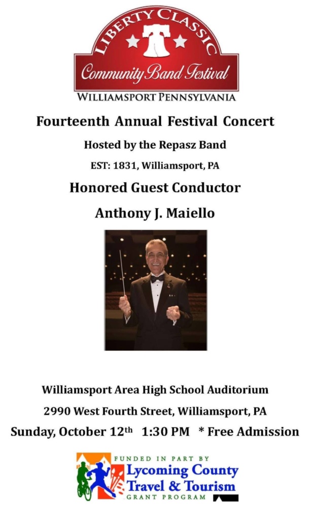 Free concert to be held on October 12, 2025, 1:30PM at the Williamsport Area High School Auditorium